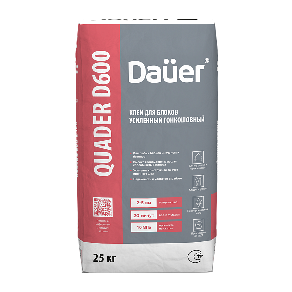 Клей для блоков: QUADER® BLOCK D600 , упаковка 25 кг