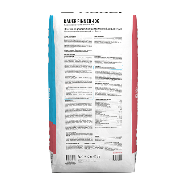 Шпатлевки: Dauer Finner® 40 G Шпатлевка цементная армированная базовая серая, упаковка 25 кг