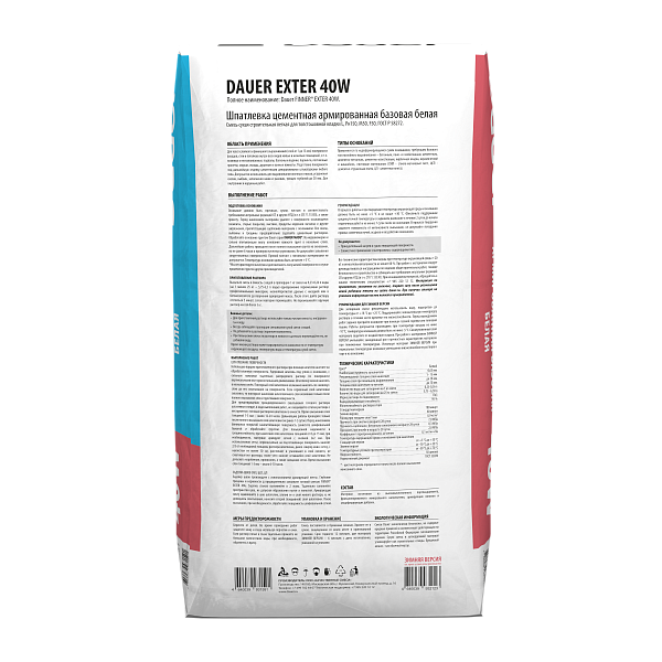 Шпатлевки: Dauer Finner® 40 W Шпатлевка цементная армированная базовая белая, упаковка 25 кг