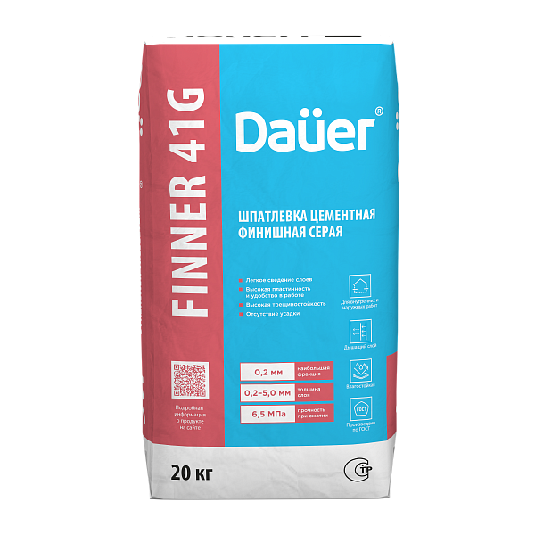 Шпатлевки: Dauer Finner® 41 G Шпатлевка цементная финишная серая, упаковка 20 кг