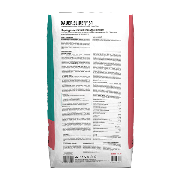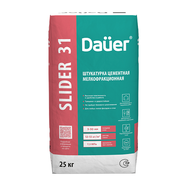 Штукатурка цементная: Dauer Slider® 31 мелкофракционная гладкая, упаковка 25 кг